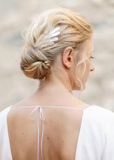 An invocation of grace and purity, the Angel Wings vine captures the aerial essence of an angel's wing. Each feather, made with pearlescent epoxy resin, offers a divine caress to the hair, transforming the hairstyle into a poem of celestial light.