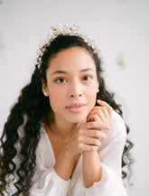 Scattered with pearly leaves and pearls, this piece offers an organic and warm harmony. Ultra-lightweight, it elevates the hairstyle with natural elegance, bridging botanical richness and modern delicacy.