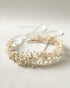 The Gypso-Alcea Crown celebrates organic elegance , where ceramic flowers and golden stems dance with the lightness of a spring breeze . Each flower, meticulously sculpted, evokes the ephemeral beauty of nature , transforming the wearer into a moving garden, imbued with refinement and grace . This tiara does not just adorn a hairstyle: it is a poetry to wear , a tribute to the timeless splendor of delicate blooms.