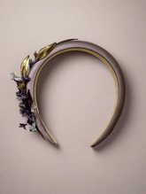 The softness of Provence. The Kate Headband dresses a violet satin silk base with hand-sculpted lavender sprigs.