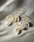The Mistletoe earrings capture the magic of winter evenings , where mistletoe, a symbol of love and celebration , hangs its delicate leaves as an invitation to share precious moments. Crafted in pearly ceramic , their graceful leaves dance with every movement, while freshwater pearls reflect the serenity of a snowy landscape . More than a jewel, these earrings embody a timeless winter poetry , an ode to affection and sweet moments of complicity .