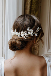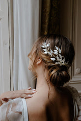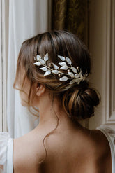 Nestled among this refined foliage sparkle small golden "olives," like sun beads frozen in eternal radiance. A universal symbol of peace and prosperity, this hair jewel offers a regal and timeless allure, perfect for elevating a low bun or a half-up hairstyle.