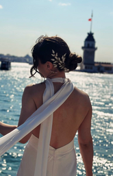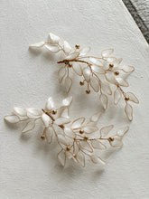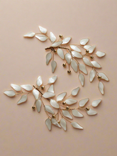 A tribute to ancient olive groves, the Olea Vine captures the soft light of dawn. Its pearly white resin leaves blend with golden beads for a look that is both radiant and regal. A symbol of peace and prosperity, this flexible jewel adapts to your vision: it slides along a bun or highlights the movement of a half-up style. A touch of precious nature to illuminate your hairstyle.