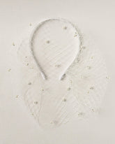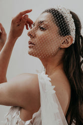 A whisper of tradition for the modern bride. This satin headband, adorned with a delicate birdcage veil, frames the face with mysterious retro-chic charm. Ideal for a civil wedding, it offers timeless elegance with absolute lightness.