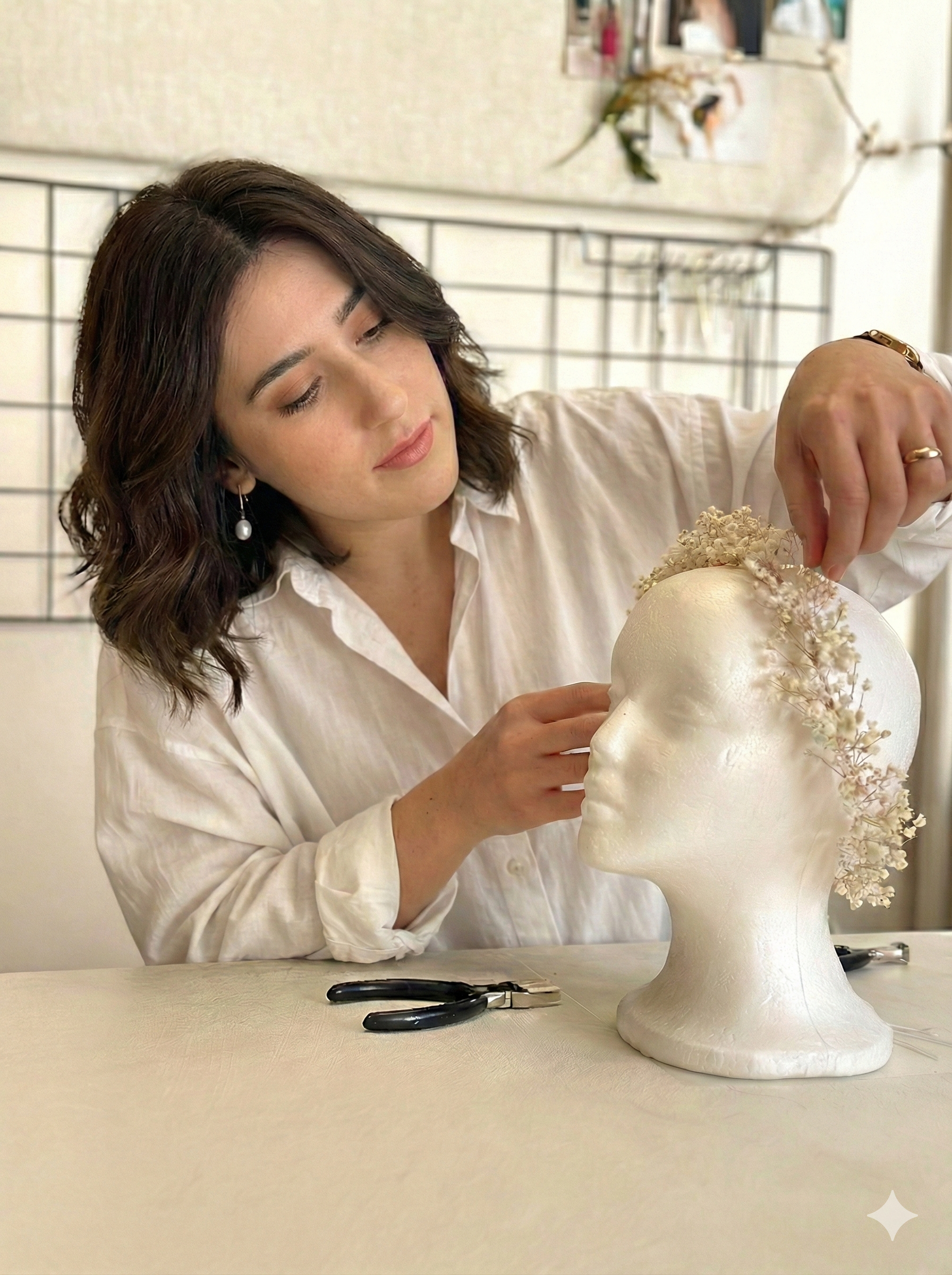 Busra est la force créative derrière Anthémis, où elle imagine et confectionne à la main des accessoires de cheveux et des bijoux couture avec une touche profondément personnelle. Son histoire commence dans l’enfance, par un amour instinctif pour les perles, qui s’est transformé au fil du temps en une véritable passion pour le design et l’artisanat.