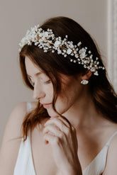 - Matières : Fleurs en porcelaine froide (finesse albâtre) & Perles nacrées.