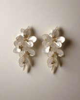 Ode à la beauté organique, les boucles d'oreilles Gaia capturent la lumière telle une rosée matinale. Leurs fleurs en résine artisanale translucide s'harmonisent avec des feuilles nacrées et des perles de bronze, créant un équilibre botanique parfait.