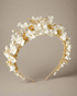 Plongez dans l’élégance intemporelle de la Régence anglaise avec la tiare Gisèle, une pièce d’exception inspirée de l’univers de Bridgerton. Conçue pour capturer la majesté et le raffinement des têtes couronnées, cette tiare allie fleurs en céramique nacrée, perles d’eau douce et détails dorés scintillants. Son design sophistiqué offre une silhouette romantique et moderne, idéale pour les mariées en quête d’un éclat royal avec une touche contemporaine.