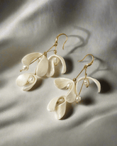 - Matières : Feuilles en porcelaine froide (rendu nacré) & Perles d'eau douce.