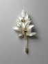 La boutonnière Olea rend hommage aux oliveraies millénaires, où les feuilles d’olivier en résine époxy, aux reflets dorés délicats, s’entrelacent avec des perles dorées en forme d’olives. Évoquant la lumière dorée de l’aube sur un verger d’oliviers, cette pièce symbolise la prospérité, la paix et l’élégance intemporelle.