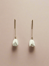 Inspirées par la Haute Couture, elles suspendent une rose en porcelaine froide sculptée main au bout d'une fine chaîne dorée. Un jeu de mouvement subtil pour la femme qui cherche à incarner le chic parisien : simple, épuré, mais inoubliable.